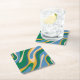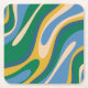 Wavy Loops Retro Abstract Pattern Blue Green Square Paper Coaster