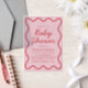 Celebrate in style with our Wavy Modern Curvy Retro Pink and Red Baby Shower Vellum Invitations! 🎀👶✨ Featuring bold pink and red wavy patterns, trendy retro typography, and a modern aesthetic, this invitation brings a fun and stylish touch to your baby shower. Printed on luxurious translucent vellum, it creates a chic layered effect, perfect for a modern, coquette, or retro-inspired celebration. 💕🎀 Fully customizable to match your event details! 💌✨