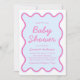 Wavy Modern Curvy Retro Pink Blue Baby Shower Invitation