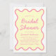 Wavy Modern Curvy Retro Pink Yellow Bridal Shower Invitation