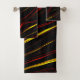 Image with traces in the red and golden - or yellowish - colour in black fund. Wavy or bent traces
