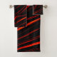 Wavy red long traces in black fund bath towel set