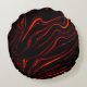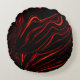 Wavy red long traces over black background round pillow