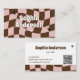 Stand out with this stylish and funky business card featuring a wavy chequerboard pattern in trendy pink and chocolate brown. The groovy 70s-inspired design, playful star accents, and bold typography make this card perfect for creatives, influencers, beauty professionals, or anyone with a bold personal brand. Includes a spot for a QR code to link directly to your website, portfolio, or socials. Customize your name, title, and contact details to make it uniquely yours.