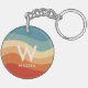Trendy double sided keychain featuring wavy stripes in retro colours. Large centred monogram and associated name. Clean, simple minimalist typography. Fully personalizable. Great gift for someone special or yourself.
