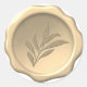 Inside a (faux) golden wax seal with irregular contour, there is an embossed willow branch with leaves.