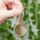 Hand crafted faux wax seal monogram inlay in a premium silver keychain
