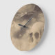This is a old pirate skull down below the sea one can see the skull a bit of the old ship as it leaves the skull behind and some little fish swimming about the art has some very old feel and vintage look to it.