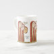 This elegant bone china mug is a fitting Christmas gift for the discerning Host/Hostess, friend, family, or for your own holiday gathering! Featuring a delicate painting that's a mash-up of 1920’s Art Deco & the unique styling of digital artist, Leslie Sigal Javorek, depicting 3 groups of an angelic Asiatic choir of 3, on a golden floor, singing the melody of a beloved Christmas Carol. Between each set lies a text field for the recipient’s monogram.