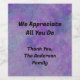 Let your caregivers, assistants, and helpers know that they are appreciated with this inexpensive wine bottle label featuring a marbled purple abstract background. "We Appreciate You" and your name can easily be customized.