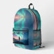 Inspire curiosity and wonder with this stunning planet alignment backpack. Featuring a breathtaking aurora sky, a silhouetted figure gazing at the planets, and the empowering quote, "We are all a part of something greater."