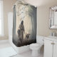 shower curtain featuring the serene forest scene with the shepherd and sheep: