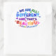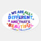 Inspirational quote of “We Are All DIFFERENT And That's BEAUTIFUL” with unique Autism puzzles, and colourful butterflies flying on the background to support and advocate Autism Awareness.