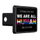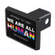 A beautiful and colourful "We Are All Human" tow hitch cover design with the word "Human" was created by a combination of LGBT Gay Pride flags.