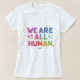 A beautiful and colourful LGBTQ pride t-shirt featuring an illustration with the quote "We are all human". With this gay pride awareness T-shirt, you can spread some equality and show the world that you are a proud LGBTQ community member