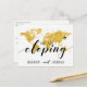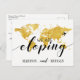 We are eloping announcement with elegant gold world map. Personalized postacr for your post elopement casual reception.