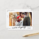 Modern photo announcement postcard perfect for announcing your upcoming elopement with a favourite engagement photo. Personalize with a photo, names and your message.
