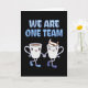 Sweet design featuring a to coffee cups in love holding hands and the quote "We are one Team". A perfect idea to tell someone that you belong together.