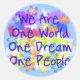 Multicolored rainbow of tissue paper and flowers are the background for these important words of change "We are one world, one dream, one people." Spread the message of peace and harmony.