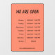 We are open Hours Business Time Black & Orange Window Cling