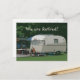 This postcard says 'We are Retired!' on top of an old camper, camping! The photograph of the old vintage camper has been enhanced and looks like a painting. This could be a humourous way to tell your friends & family you have retired and how they can contact you now. The back is an easy to customize template that says 'Home is, where the camper is!' and 'Contact us here:' so you can include any contact info. you have, such as cell phone and email address.