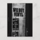 A postcard with a black and white photo of a door that reads "We Buy Vinyl"
