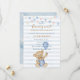 Invite loved ones to celebrate your baby boy with this adorable "We Can Bearly Wait" baby shower invitation. Featuring a sweet teddy bear on a rocking horse and soft blue tones, it’s perfect for a cozy and elegant baby shower.