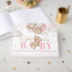 Celebrate the upcoming arrival of your little one with our "We Can Bearly Wait" Baby Shower Guest Book! This delightful design features an adorable brown bear adorned with a charming pink bow, holding brown and pink balloons. Set against a dreamy backdrop of fluffy clouds and twinkling stars, this guest book creates a whimsical and heartwarming keepsake. Cherish the loving messages and memories from your special day with this enchanting guest book. BBS389