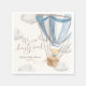 These paper napkin feature a soft hot air balloon teddy bear design and modern fonts. The script heading is an image that cannot be edited. All of the other text is fully editable. For more advanced customization of this design, simply select the "Customize It" button above.