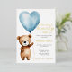 Celebrate the impending arrival of your little one with our adorable "We Can Bearly Wait Boy Baby Shower Invitation." This charming invitation features a sweet teddy bear cub, a cute animal with a blue heart shaped balloon. The watercolor design adds a touch of elegance, while the brown and blue colour palette creates a warm and inviting atmosphere. It also has a vibe of a minimalist woodland forest theme. The shimmering real gold foil text at the front and the faux gold glitter stars at the back add a sprinkle of magic to your special day. Get ready for ideas for a beary cute celebration that will fill your heart with joy!