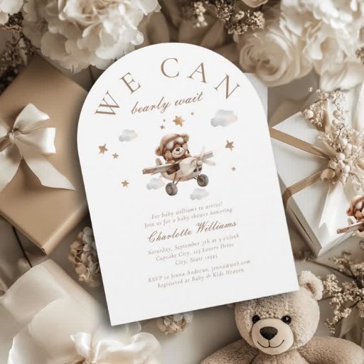 We Can Bearly Wait! Cute, modern baby shower napkins featuring a cute Bear flying a plane, watercolor illustration and handwriting font. In just a few clicks, personalize it with your own details and preferences. Availible in different colours, for girl, boy & gender-neutral.