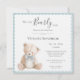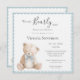 We can bearly wait theme baby shower invitation. Adorable hand drawn teddy bear. The simple soft colours sets the tone for a sweet themed baby shower. Such a sweet and simple invitation for that special event. Coordinating blue scalloped frame finish off this adorable invite.