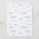 Design features teddy bear wearing blue hoodie and sitting in a hot air balloon, clouds and stars. Text says "we can bearly wait".