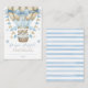 This adorable diaper raffle enclosure card would be perfect for your twin boy baby shower or sprinkle. It features 2 boy teddy bears holding heart shaped balloons in a hot air balloon with blue and tan stars. It would perfect for celebrating your loved ones. It's watercolor design is modern and sweet and it has a coordinating blue watercolor striped back. It's unique and precious. So cute for asking guests to bring a pack of diapers for the sweet baby boys you are welcoming.