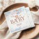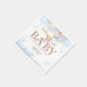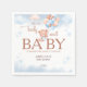 Sweet watercolor baby shower napkins featuring an adorable teddy bear holding blue and blush balloons with soft clouds and star accents. The playful “We Can Berly Wait” phrase adds a charming touch to this elegant baby shower design. Perfect for a boy baby shower, teddy bear theme, or soft pastel party decor.