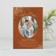 This beautiful wedding reception or after party invitation features an elegant script title reading "We Did!" It has a simple yet elegant design with fancy gold script lettering on a marbled rust orange or burnt umber coloured background, and your photo in an oval frame surrounded by faux foil lace frills. Perfect for elopements or celebrations taking place after a private ceremony. Great way to invite your family and friends to celebrate your love.