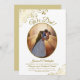 This beautiful wedding reception or after party invitation features an elegant script title reading "We Did!" It has a simple yet elegant design with fancy gold script lettering on a classic white background, and your photo in an oval frame surrounded by ornate golden faux foil curls and swirls. Perfect for elopements or celebrations taking place after a private ceremony. Great way to invite your family and friends to celebrate your love.