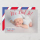Sweet patriotic red, white and blue baby announcement gender neutral. Red, white and blue typography. Let everyone know your bundle of joy has arrived.