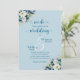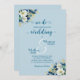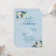 An elegant wedding invitation with dusty blue gold glitter flowers and elegant calligraphy that you can customize with your details.