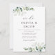 Set the romantic feel for your wedding day with this modern design featuring watercolor eucalyptus leaves. You can add more information about your wedding to the back of the invite..