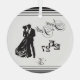 This elegant double sided flat save the date keepsake ornament is available is all shapes and sizes. This unique ceramic save the date keepsake ornament makes the perfect holiday gift for friends and family involved in the planning of your wedding. Give as a parent's gift, bridal party keepsake, or as a way to surprise everyone and announce your engagement at your holiday gatherings. Featuring all custom elements; from the couple silhouette, to the date stamp and monogram designed specifically for you to use throughout your wedding suite and day of stationery this is a spectacular memento of this very special time in your lives. This extravagant Save the Date is stunning in crisp black and white. This Save the Date Design is part of our Tuxedo Collection setting the stage for the fairy tale wedding of your dreams and an event your guests will never forget. Design your own custom elements or contact PK Paperie prior to placing your order and we will design them for you according to your specifications. At only $50 for up to 5 Customs Elements this is a bride's dream come true. These custom features will be delivered via digital download and are exclusively licensed for your use across your entire print suite and beyond. For beautiful keepsakes, signatures on thank you cards, monograms for towels or mailboxes, wax stamps, and more you will use these digital assets long after the cake is cut and the bouquet is tossed. PK Forever Yours Paperie predicts that keepsake Save the Dates and Invitations in ceramic, marble, acrylic, metal, or even wood will be a huge trend for the 2026-27 wedding season.