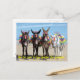 Four cute donkeys waiting on the beach to give rides "We Do Love To Be Beside The Seaside" . A lovely sunny postcard to collect or send to a friend.