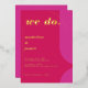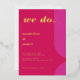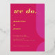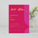 Our minimal, bold retro style wedding invitation is perfect for the trendy couple who loves standing out and making a bold statement. Our design features a bold bright pink-magenta colour combo. Simple abstract arch and circle shapes create a bold look with "We Do." displayed boldly in white large font. The reverse side features a simple modern design with a bold monogram and an optional couple's wedding website address. Designed by Moodthology Papery