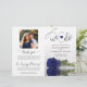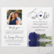 This beautiful wedding program is both modern and elegant. The DIY folded design features modern script lettering on the front reading "we do" with the names of the couple and wedding date/location. There is a photo of a beautiful long-stemmed navy blue colored rose reflecting in a pool of water with waves and ripples. The inside has the same flower as a watermark background with space for the ceremony and bridal party details. The back has your photo, along with space for a customizable thank you note, and a memorial note to recognize lost loved ones. Sophisticated, stylish, and chic, these programs will add class and style to your wedding celebration.