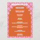 Our minimal, bold retro style wedding order of service program is perfect for the trendy couple who loves standing out and making a bold statement. Our design features a bold bright pink-orange colour combo. Simple abstract boho arch and circle shapes create a bold look with "We Do." displayed boldly in white large font. The reverse side features a simple modern design with a bold monogram and an optional couple's wedding website address