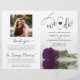 This beautiful wedding program is both modern and elegant. The DIY folded design features modern script lettering on the front reading "we do" with the names of the couple and wedding date/location. There is a photo of a beautiful long-stemmed plum purple coloured rose reflecting in a pool of water with waves and ripples. The inside has the same flower as a watermark background with space for the ceremony and bridal party details. The back has your photo, along with space for a customizable thank you note, and a memorial note to recognize lost loved ones. Sophisticated, stylish, and chic, these programs will add class and style to your wedding celebration. PLEASE NOTE: These programs ship as a flat sheet of paper, and will need to be folded. There are a variety of paper choices, but the semi-gloss option is a light card stock and will be difficult to fold cleanly, so we recommend you choose a different option.