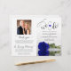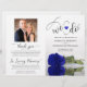 This beautiful wedding program is both modern and elegant. The DIY folded design features modern script lettering on the front reading "we do" with the names of the couple and wedding date/location. There is a photo of a beautiful long-stemmed royal blue or cobalt coloured rose reflecting in a pool of water with waves and ripples. The inside has the same flower as a watermark background with space for the ceremony and bridal party details. The back has your photo, along with space for a customizable thank you note, and a memorial note to recognize lost loved ones. Sophisticated, stylish, and chic, these programs will add class and style to your wedding celebration.