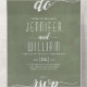 "We do" elegant stained limed ash green and white cursive script handwritten style calligraphy wedding all in one invitation.