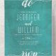 "We do" elegant stained teal blue and white cursive script handwritten style calligraphy wedding all in one invitation.