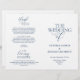 This is the foldable wedding ceremony program card, in Navy Blue elegance romantic script theme. (We Do)